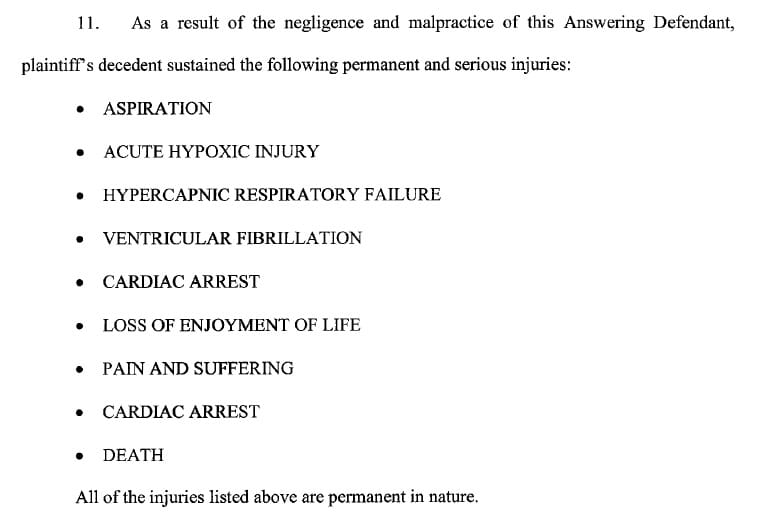 His wife sued the anesthesiologist, orthopedic surgeon, and hospital for the following damages.