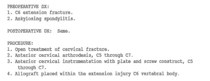 After C-spine surgery the patient suffered chronic neck pain, difficulty swallowing with weight loss, and an inability to perform ADLs.