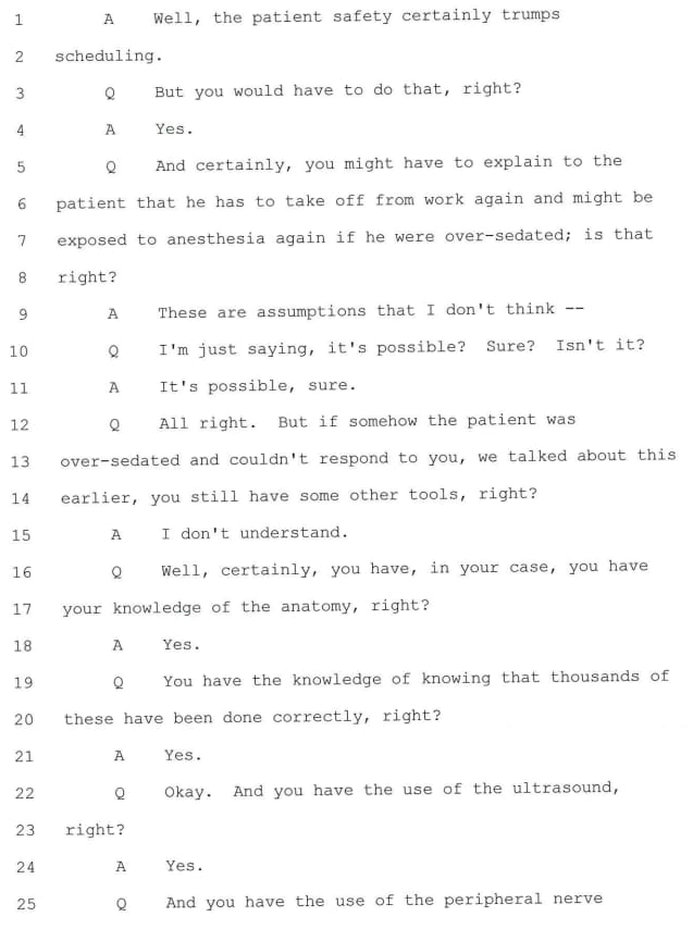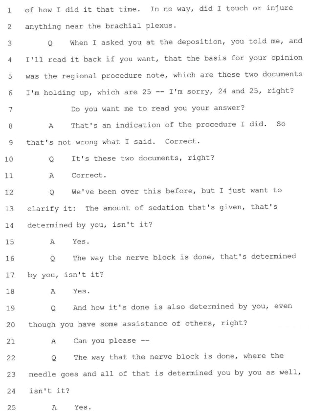 An anesthesiologist takes the stand after a supraclavicular block is blamed for a claw hand deformity