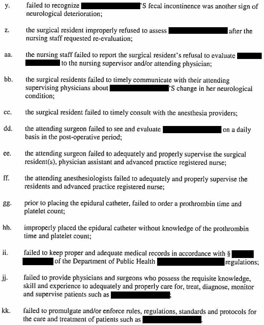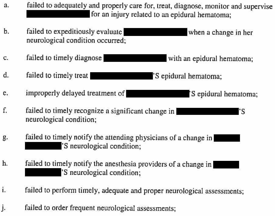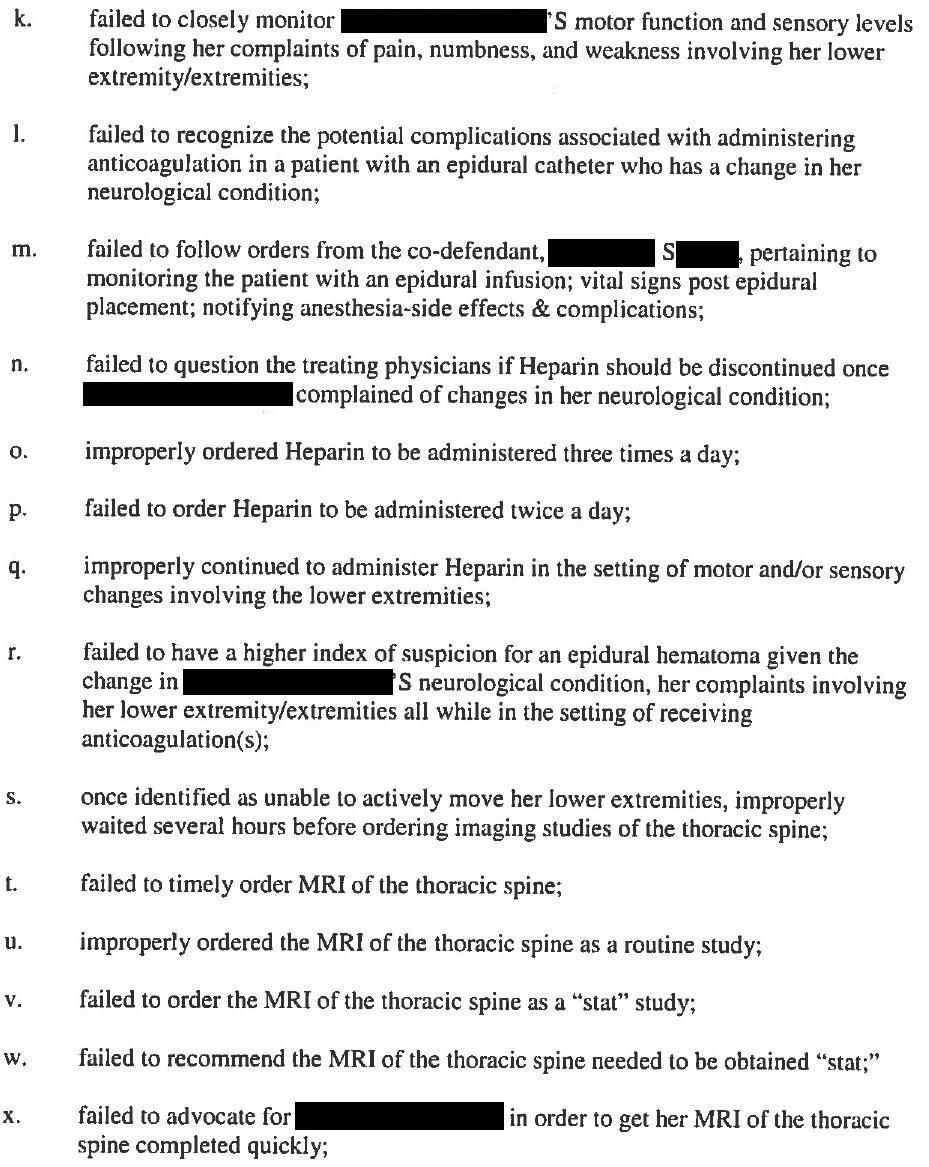 The allegations against all plaintiffs were shown here. Only some are relevant to the anesthesiologist.