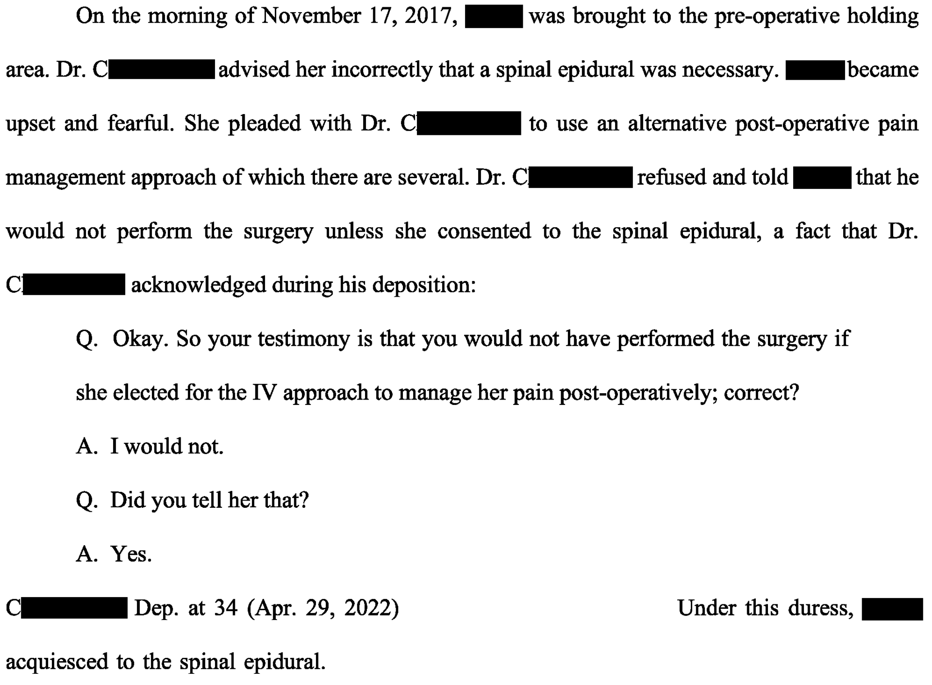 On the day of surgery, Dr C (general surgeon) discussed an epidural with the patient.