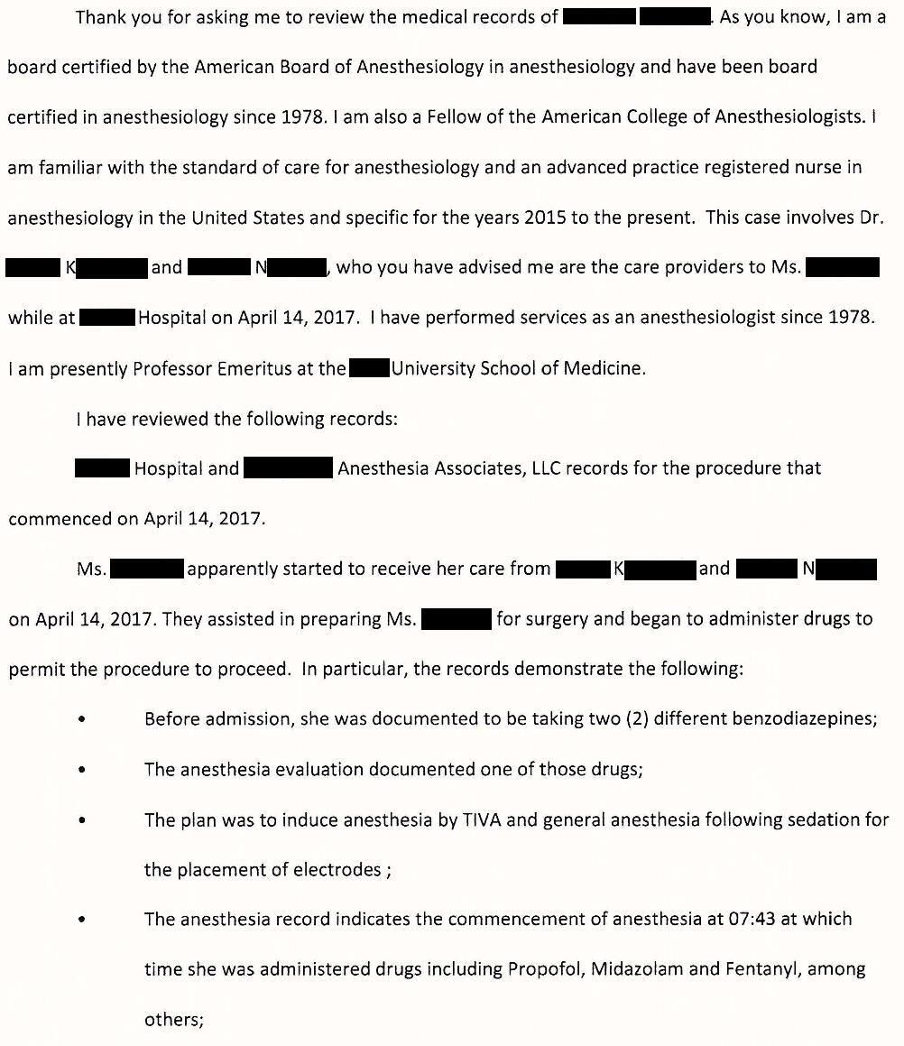 The facts of the case as described by the plaintiff are described below in the expert witness report.