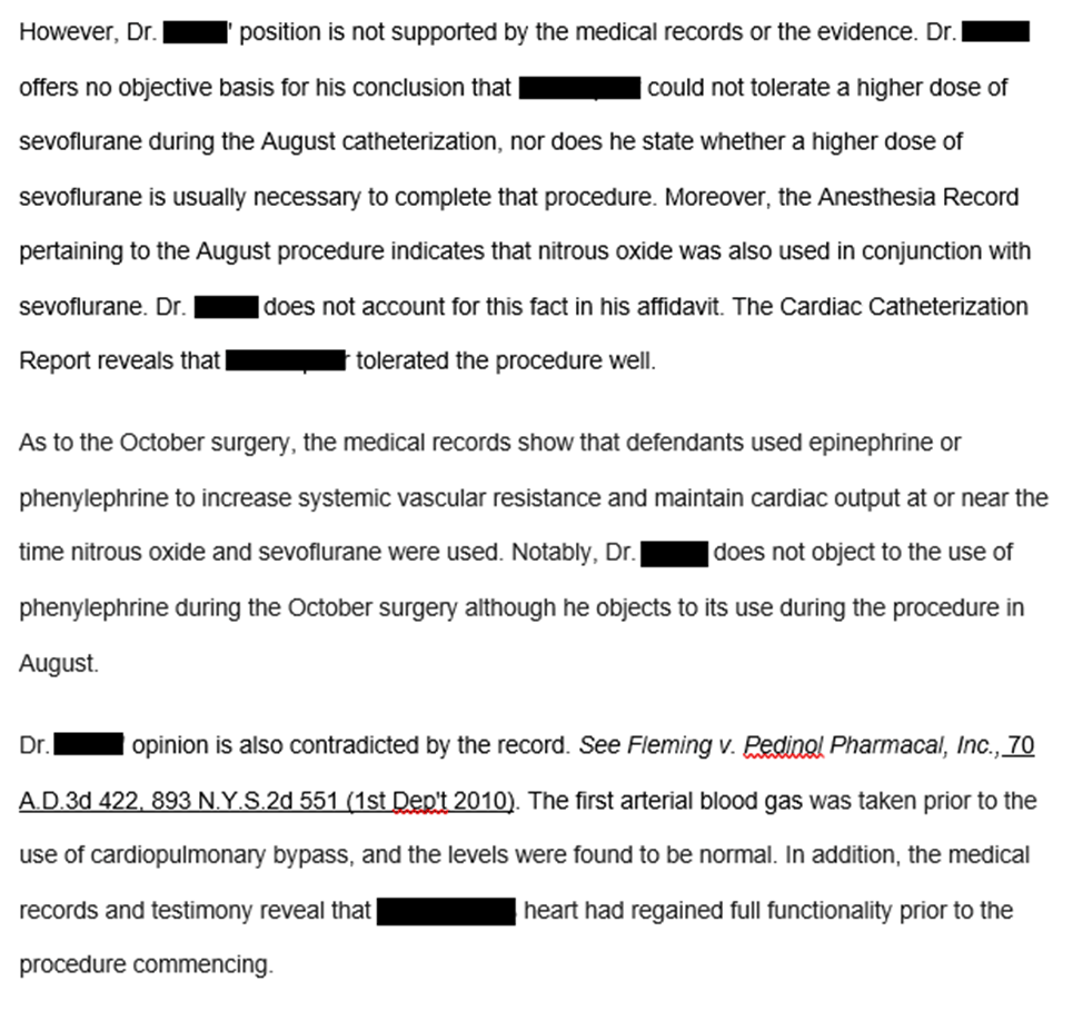 The plaintiff’s anesthesiology expert was an attending who was a few years out of residency. He had not completed a pediatric cardiac anesthesia fellowship, and he had not even completed a pediatric fellowship. If this case were to have progressed further his credentials would certainly be called into question and risk the viability of this case. I could not imagine writing that opinion criticizing someone with so much more specialized training in a very niche field I had limited exposure to. Unfortunately the monetary incentives in the medicolegal field can promote this type of brazenness.